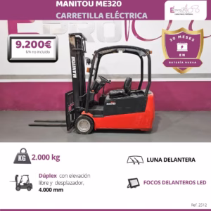 TIPO DE MAQUINA: CARRETILLA ELEVADORA MARCA: LINDE MODELO: E20L TRACCIÓN: ELÉCTRICA CAPACIDAD: 2.000 KG MÁSTIL: TRÍPLEX CON ELEVACIÓN LIBRE Y DESPLAZADOR EXTRAS: FOCOS DELANTEROS LED, BATERÍA NUEVA