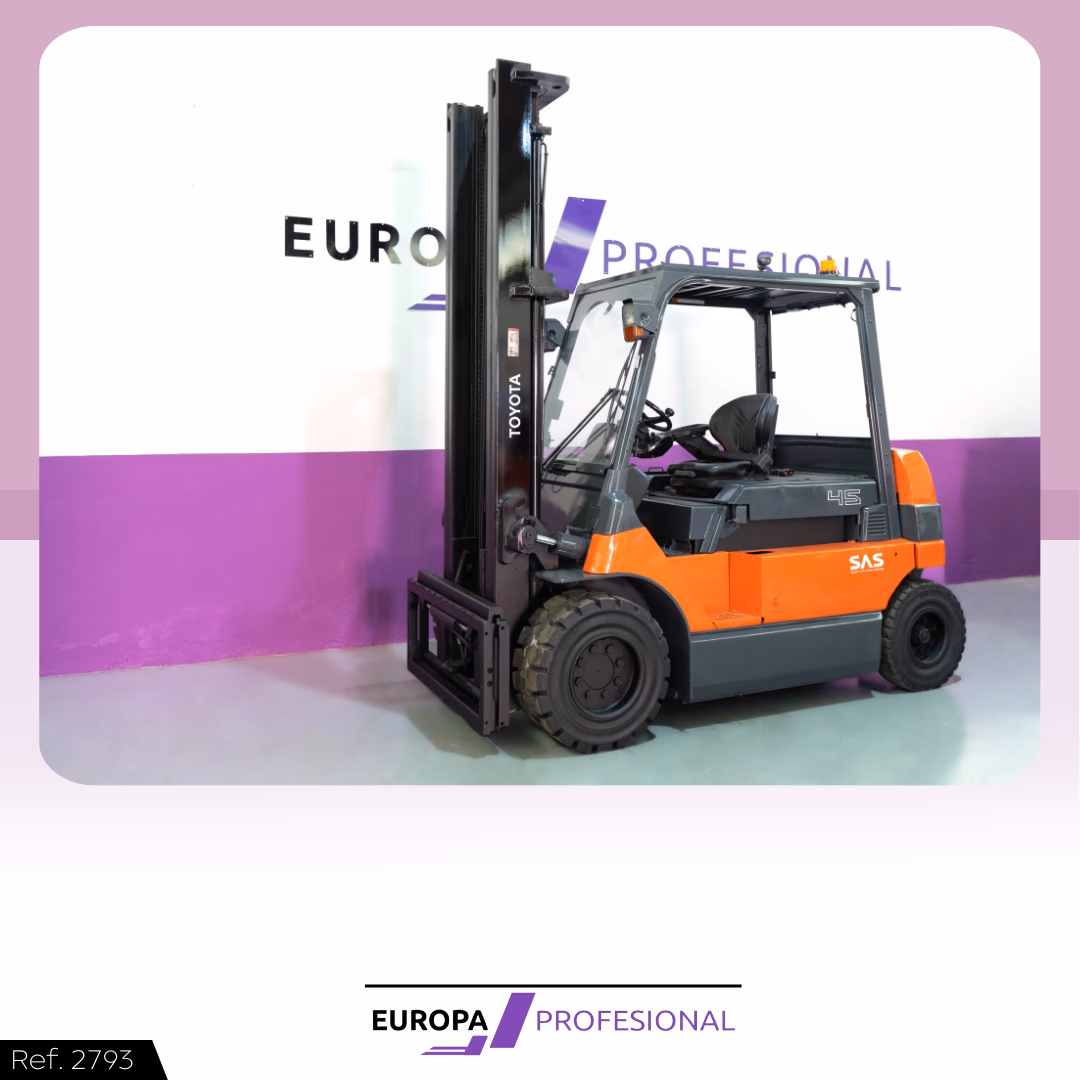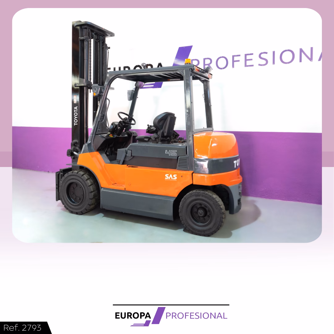 TIPO DE MAQUINA: CARRETILLA ELEVADORA MARCA: TOYOTA MODELO: 7FBMF45 AÑO: 2012 TRACCIÓN: ELÉCTRICA CAPACIDAD: 4.500 KG ELEVACIÓN: 5.000 MM EXTRAS: 30 MESES DE GARANTÍA EN BATERÍA NUEVA, LUNA DELANTERA, FOCOS DELANTEROS LED, 4º VÁLVULA, BLUE SPOT