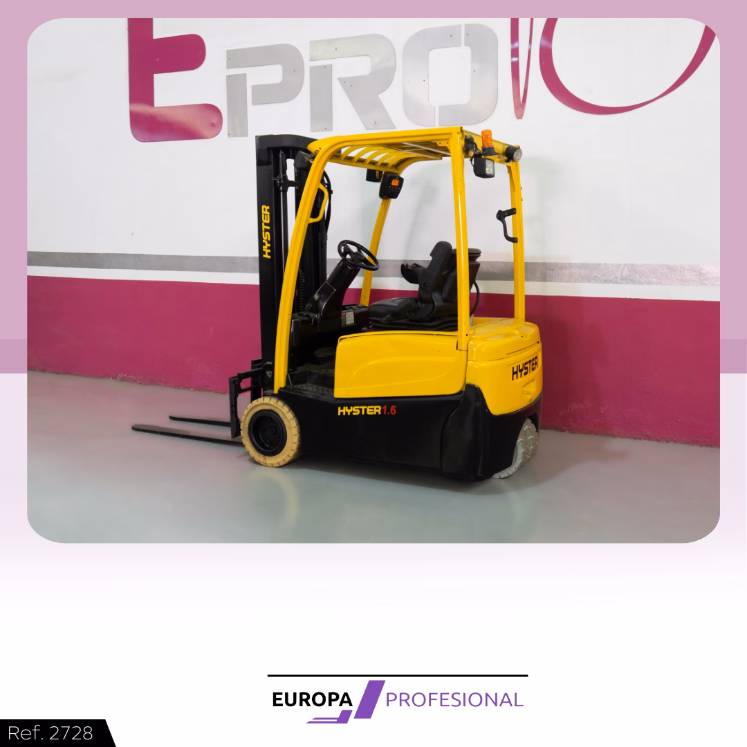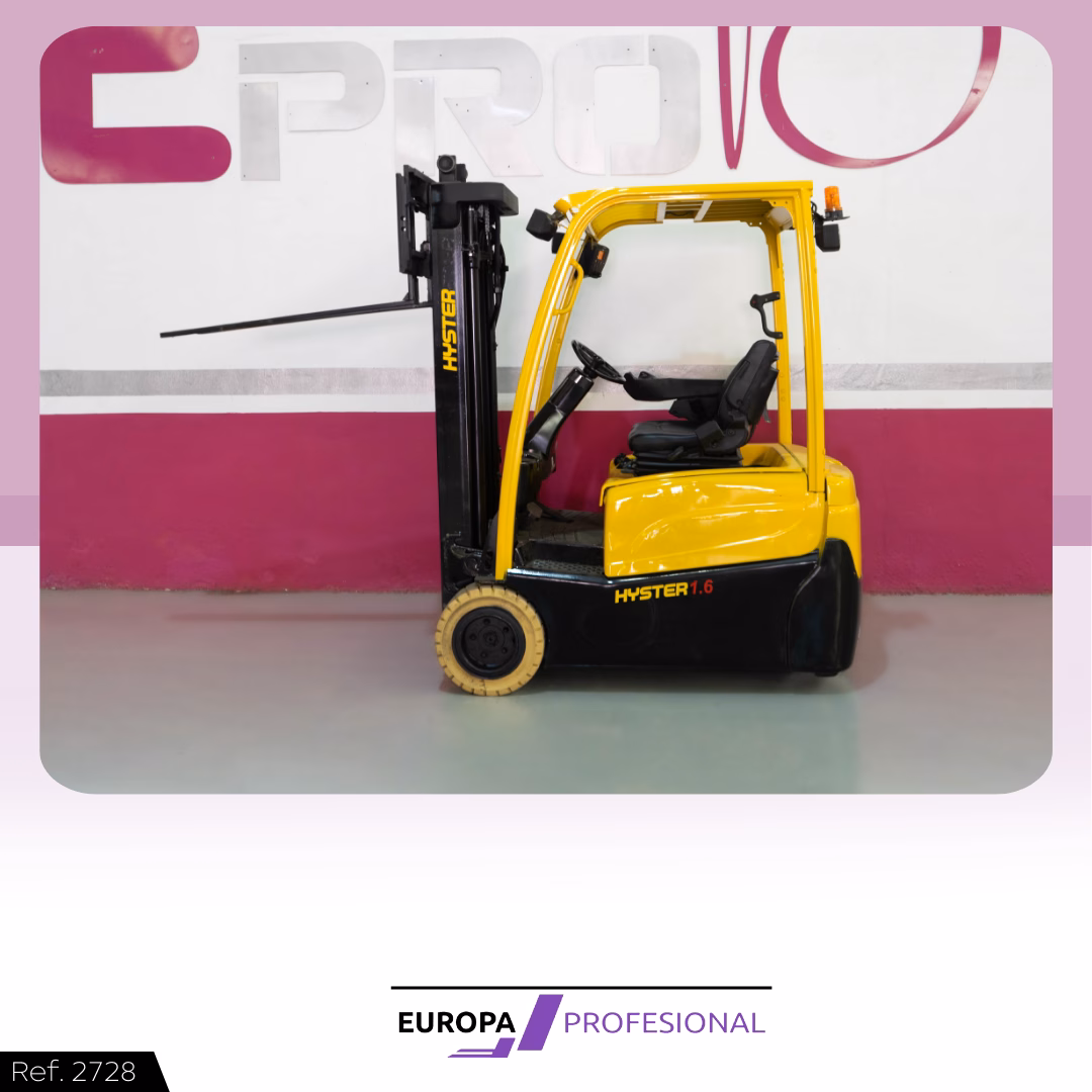 TIPO DE MAQUINA: CARRETILLA ELEVADORA MARCA: HYSTER MODELO: J1.6XNT MWB TRACCIÓN: ELÉCTRICA CAPACIDAD: 1.600 KG AÑO: 2016 MÁSTIL: TRÍPLEX CON ELEVACIÓN LIBRE Y DESPLAZADOR ELEVACIÓN: 4.880 MM EXTRAS: 12 MESES DE GARANTÍA EN BATERÍA VERIFICADA, RUEDAS BLANCAS ANTIHUELLA, FOCOS DELANTEROS Y TRASERO LED