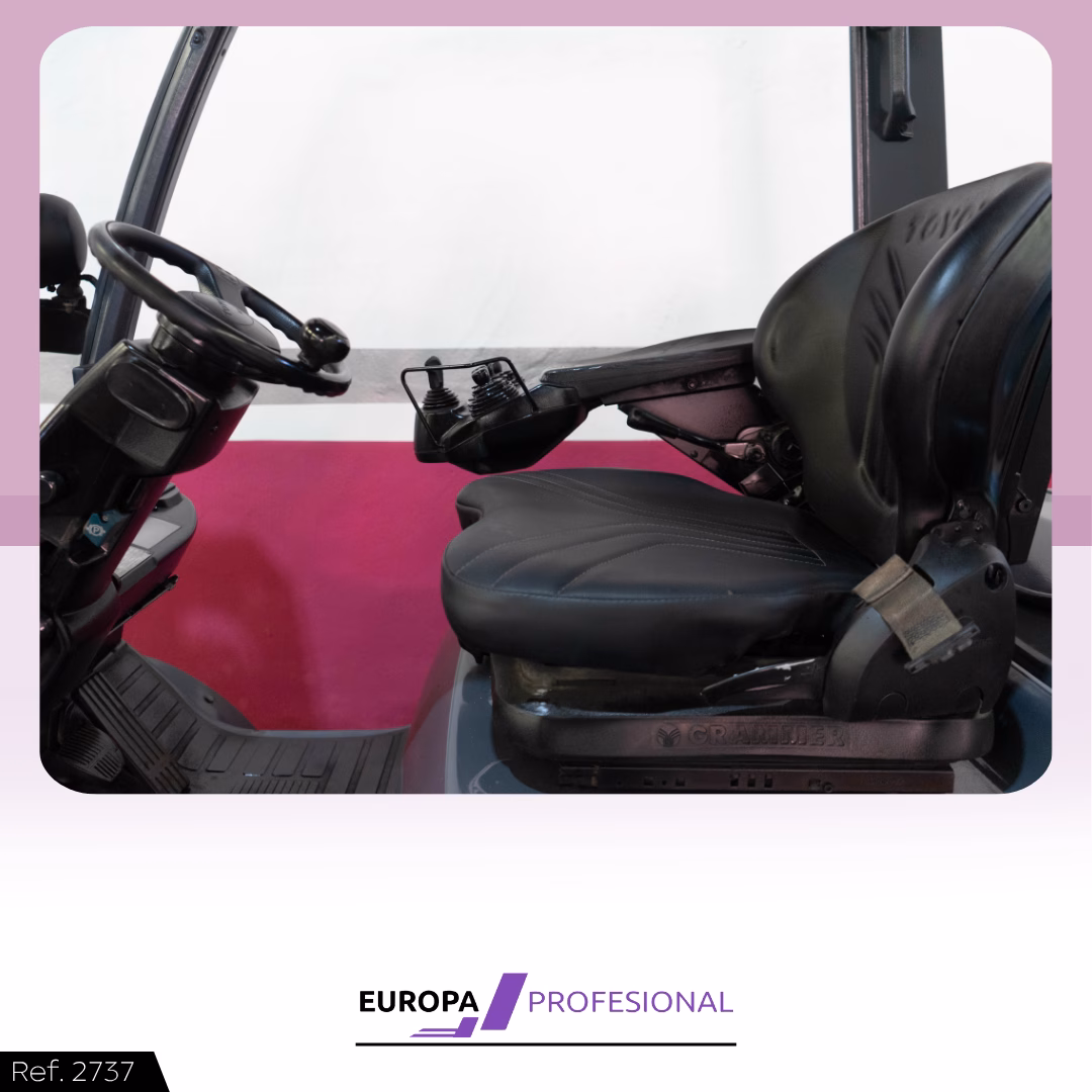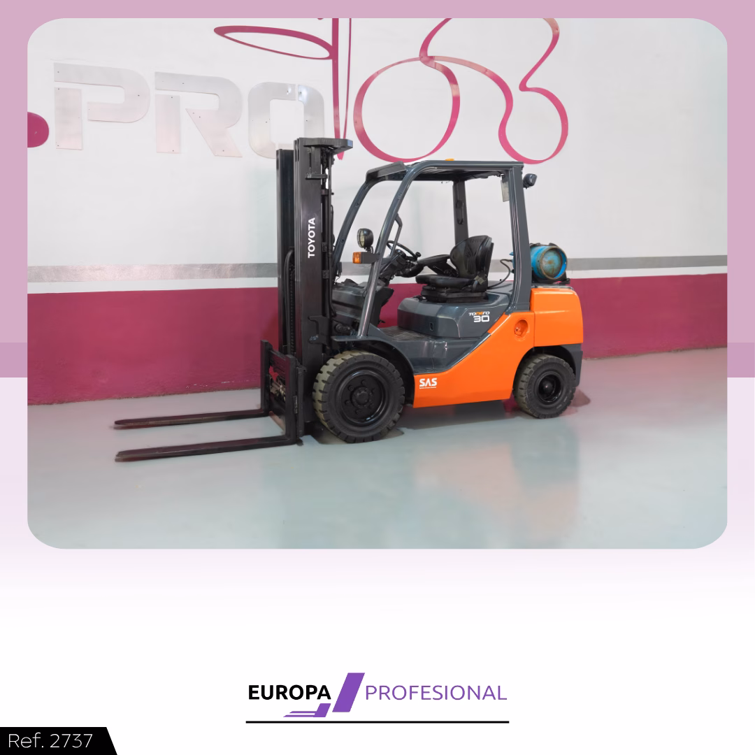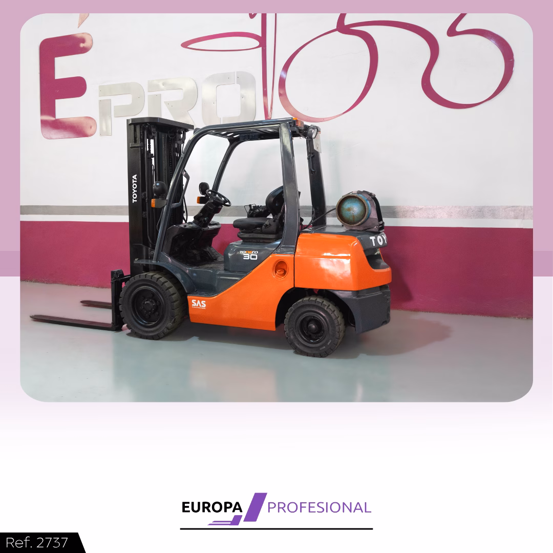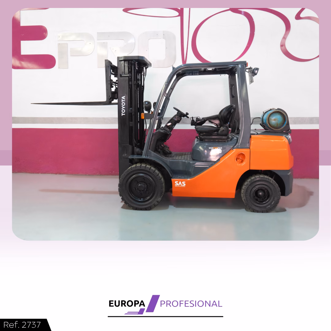 TIPO DE MAQUINA: CARRETILLA ELEVADORA MARCA: TOYOTA MODELO: 02-8FGF30 TRACCIÓN: GAS CAPACIDAD: 3.000 KG AÑO: 2017 MÁSTIL: TRÍPLEX CON ELEVACIÓN LIBRE Y DESPLAZADOR ELEVACIÓN: 4.670 MM EXTRAS: MATRICULADA, FOCOS DELANTEROS LED, 4º VÁLVULA